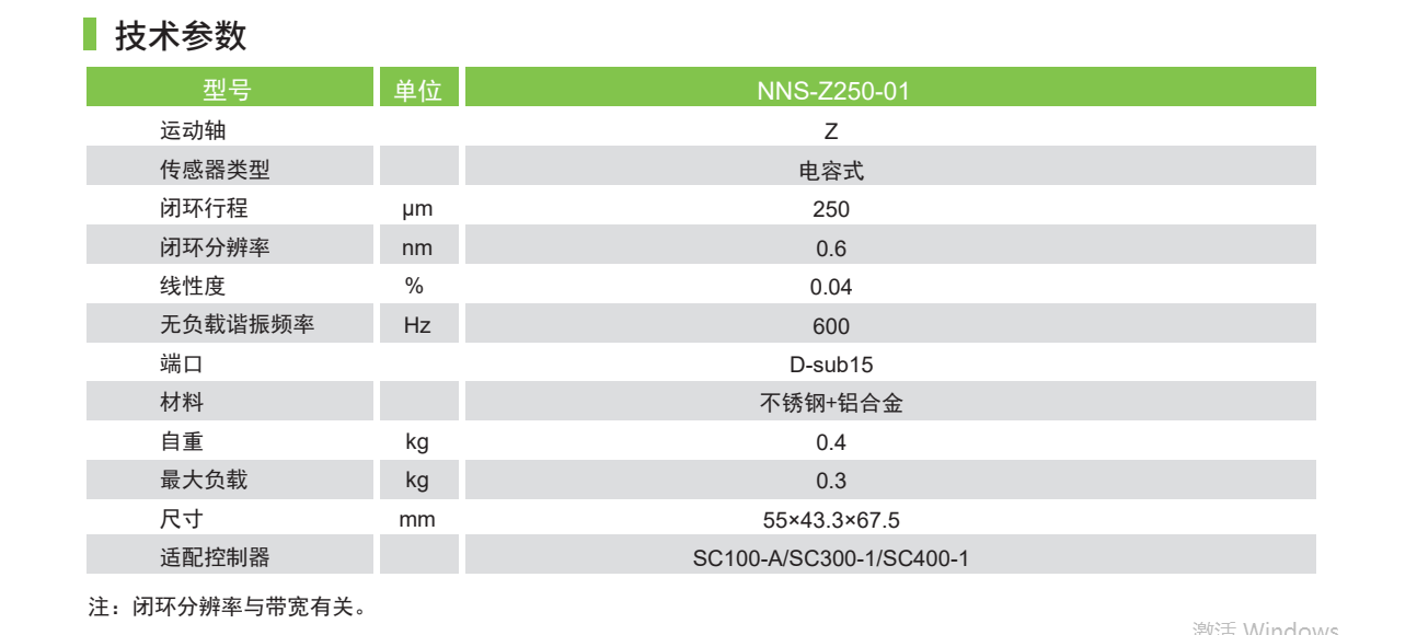 NNS-Z250-01是一款Z軸方向的運動臺,閉環(huán)行程250μm,閉環(huán)分辨率0.6nm??筛鼡Q不同的物鏡接口,用于物鏡調(diào)焦及掃描。